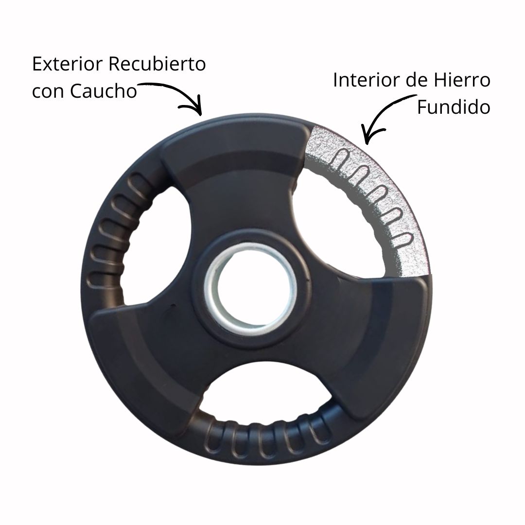 Su interior está compuesto por hierro y recubierto con caucho color negro de alta calidad